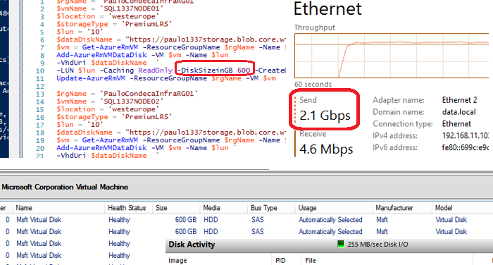 Doing a test with Diskspd, representative of what could be an OLTP Workload (75% reads + 25% writes) could easily reach a 250 MB/s throughput with a single file; with more parallel executions and different configurations, this numbers could sky-rocket but I would leave that for another time/article.